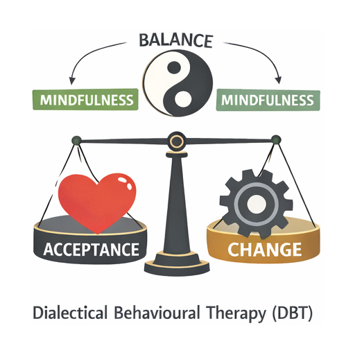 Dialectical Behavioural Therapy (DBT) is a structured, evidence-based approach designed to help individuals manage intense emotions and improve interpersonal relationships. Originally developed for borderline personality disorder, DBT combines cognitive-behavioural techniques with mindfulness practices. It focuses on balancing acceptance and change, empowering individuals to regulate emotions, tolerate distress, and communicate effectively. DBT is widely used for conditions involving emotional dysregulation, such as anxiety, depression, and self-harm behaviours. Through individual therapy, group skills training, and phone coaching, DBT equips clients with practical tools to navigate life’s challenges while fostering resilience and self-awareness.