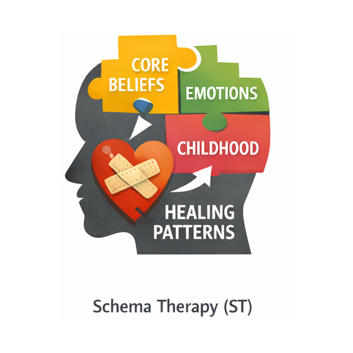 Schema Therapy (ST) integrates cognitive-behavioural, attachment, and experiential techniques to identify and modify deeply rooted maladaptive schemas. It helps individuals address emotional patterns, improve coping strategies, and foster healthier relationships through insight, behavioural change, and emotional healing.